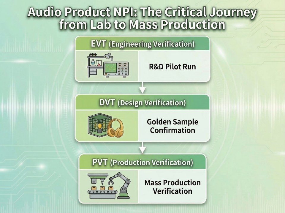 NPI (New Product Introduction) is a complete process of transforming a newly developed product into a mass-produced and marketable product. Its core role is to act as a bridge between the manufacturing plant and the research and development (R&D) unit . For audio products (such as headphones, smart speakers, and wearable devices), this process involves not only the assembly of electronic circuits but also ensuring that precise acoustic parameters (such as frequency response, distortion, and phase) remain consistent even with production volumes often reaching tens of thousands.