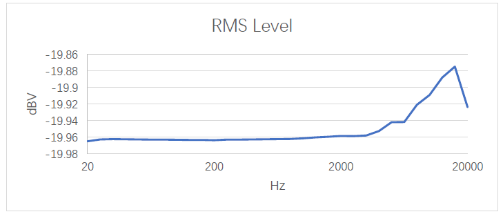 | 測試條件:[1]輸出源:APx525-PDM模組,採集端:APx525-AI模組(UNBAL)[2]U 920A電壓設定3.3V;時脈設定3.072MHz;同步模式[3]輸出源訊號輸出:0dBFS 1kHz,擷取端濾波設定:無計權,無EQ,10Hz高通濾波器 |