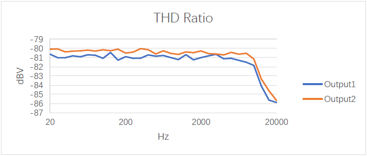 | 測試條件:[1]輸出源:APx525-PDM模組,採集端:APx525-AI模組(UNBAL)[2]U 920A電壓設定3.3V;時脈設定3.072MHz;非同步模式[3]輸出源訊號輸出:-10dBFS 1kHz,擷取端濾波設定:無計權,無EQ,10Hz高通濾波器 | ||